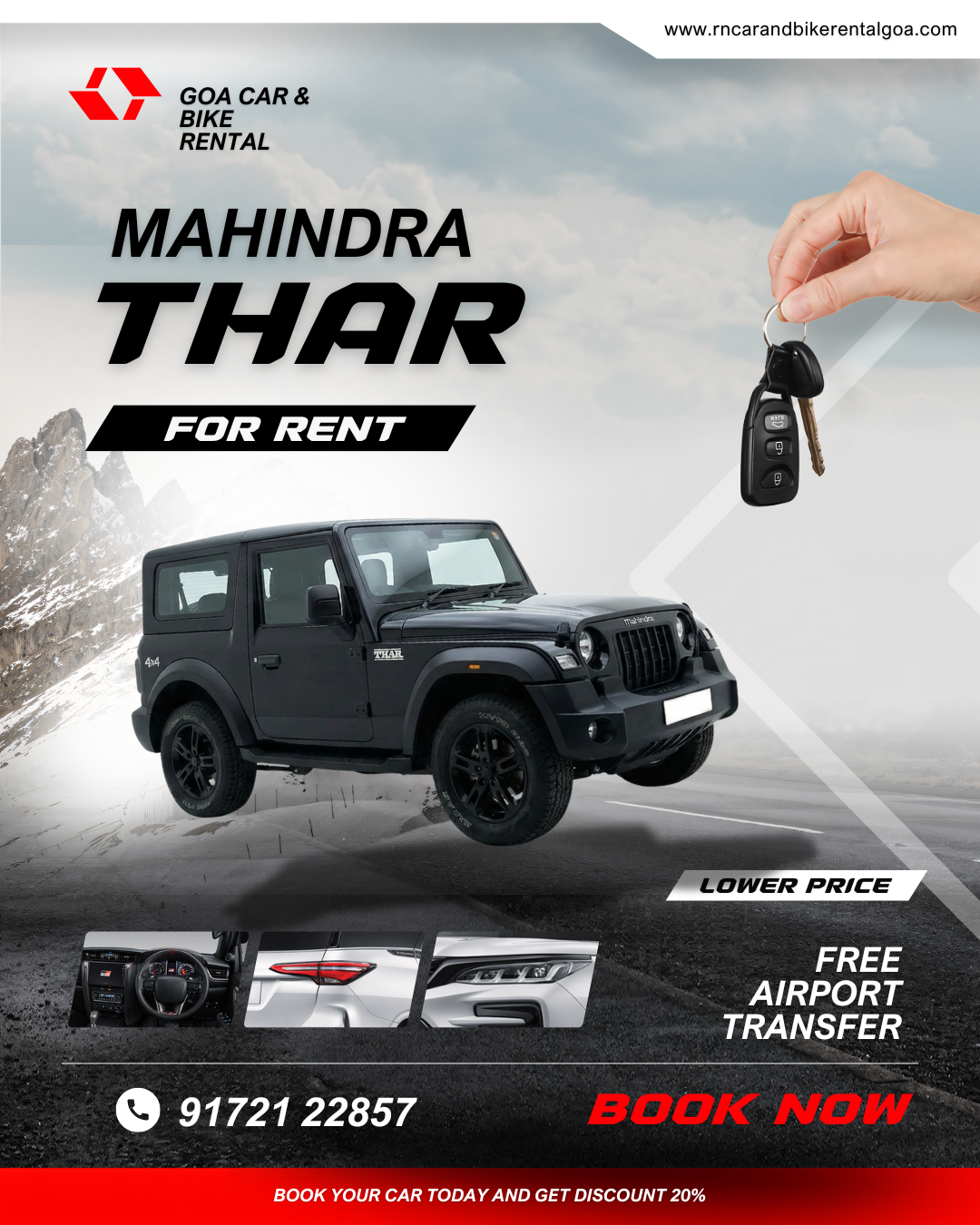 Experience the best of Goa with Goa Car and Bike Rent, your premier car rental service based in Madgaon, just a stone's throw from Margao Railway Station. Our fleet of well-maintained cars and bikes is perfect for exploring the scenic routes of Goa. Book now and discover the thrill of driving through the picturesque landscapes, beaches, and historic landmarks. Let us take care of your transportation needs, so you can focus on creating unforgettable memories. Book your ride today and let the adventure begin!